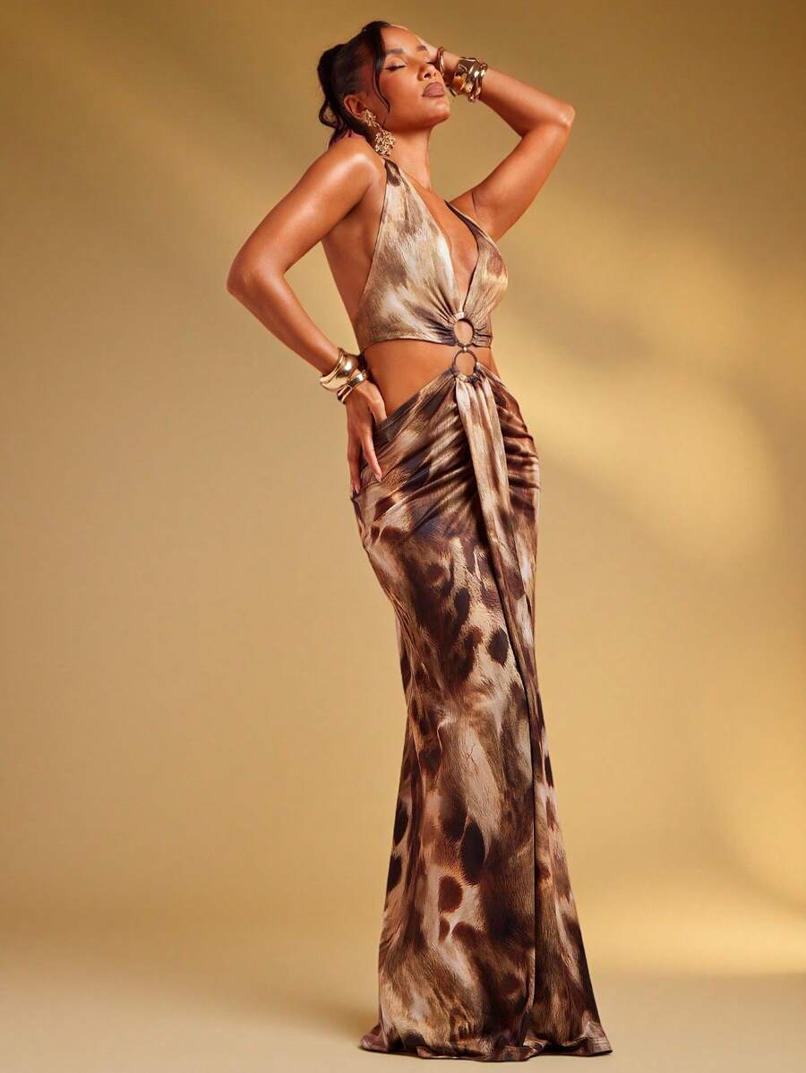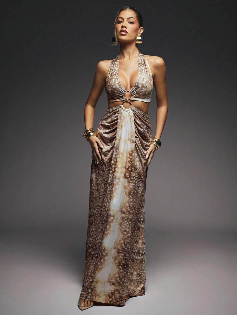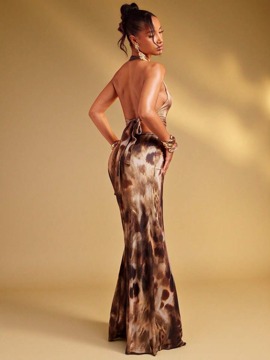Fashionable Sexy Tie Dye Print Open Back Halter Long Dress, Island Vacation Outfits, Vacation Outfits, Vacation Dress