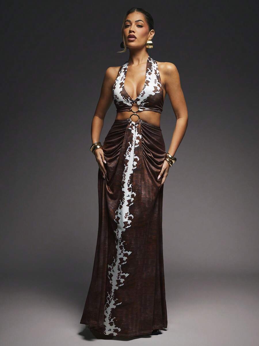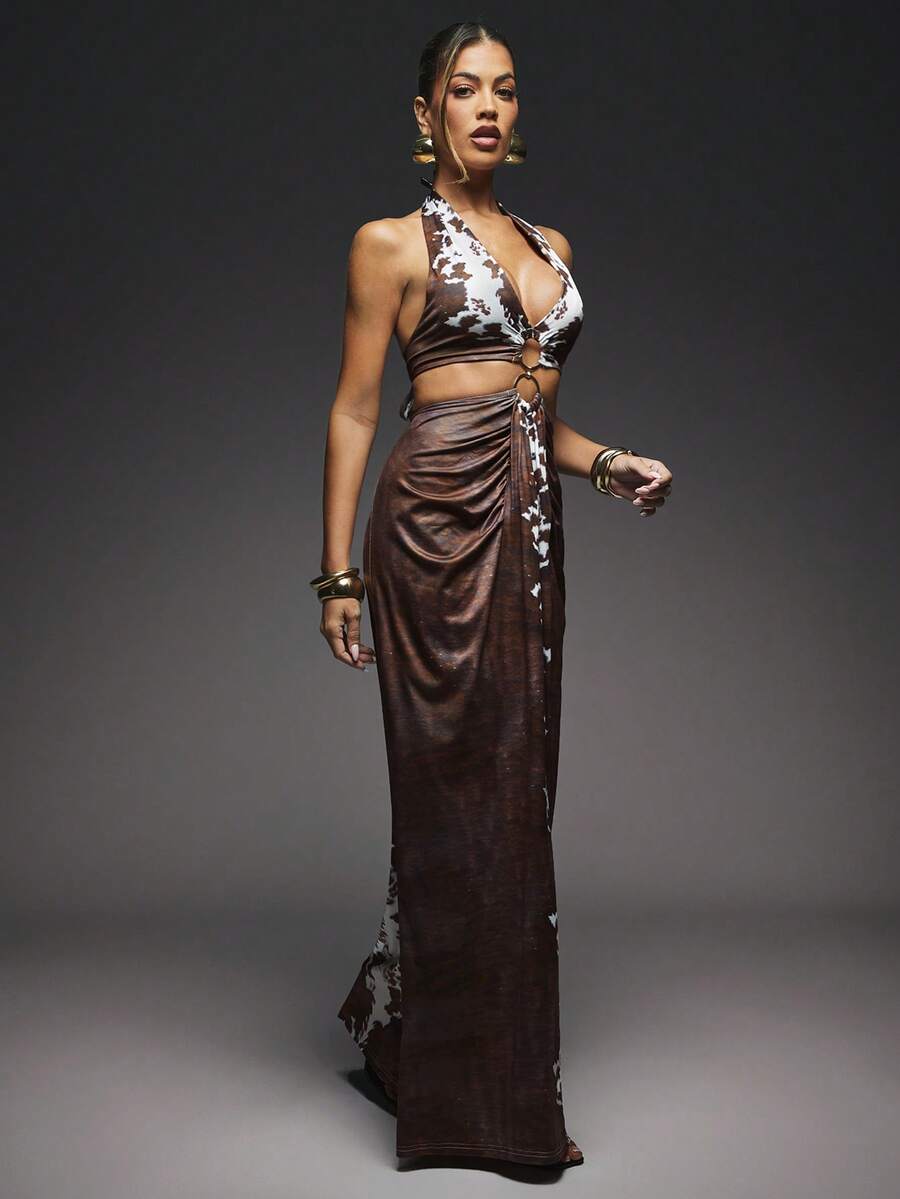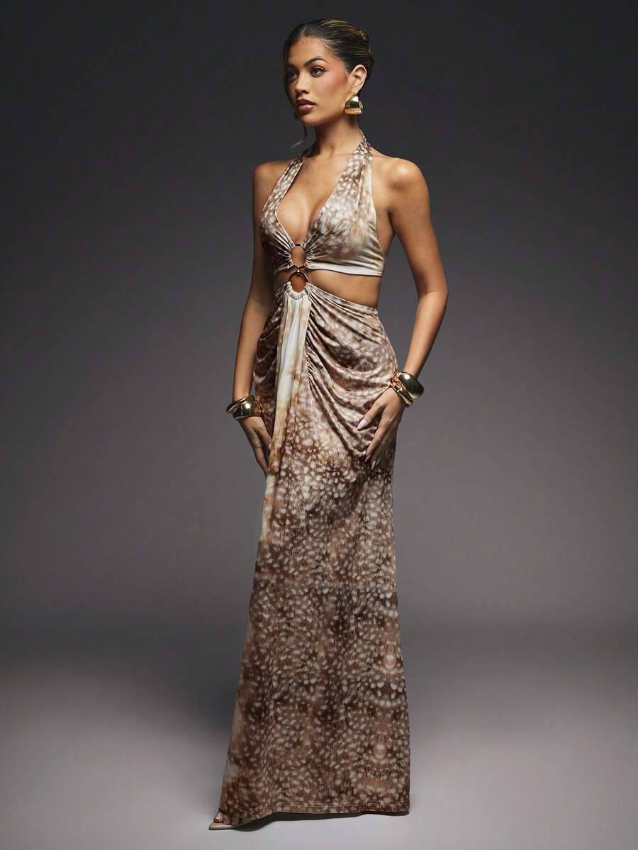 Fashionable Sexy Tie Dye Print Open Back Halter Long Dress, Island Vacation Outfits, Vacation Outfits, Vacation Dress