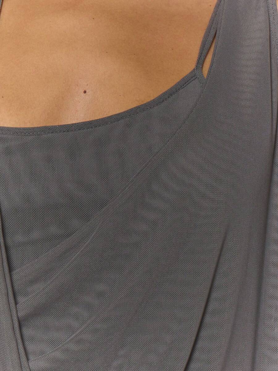 Asymmetric Hem Draped Front Sheer Mini Dress Fall Autumn Streetwear Cool Night Out Everyday Sexy