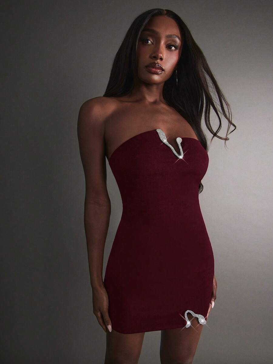 Women's Sexy Night Out Glam With Rhinestone Detail Mini Dress
