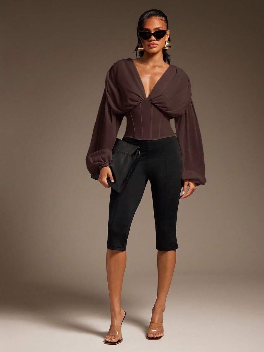 Sexy Chiffon Corset Blouse – Romantic Balloon Sleeve Top For Elegant Night Out, Going Out