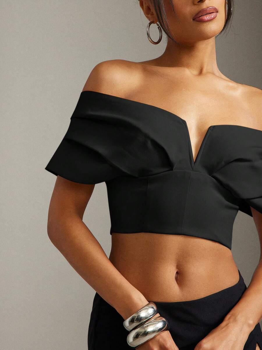 Sexy Elegant Summer Office Pleated Off Shoulder Bustier Crop Top