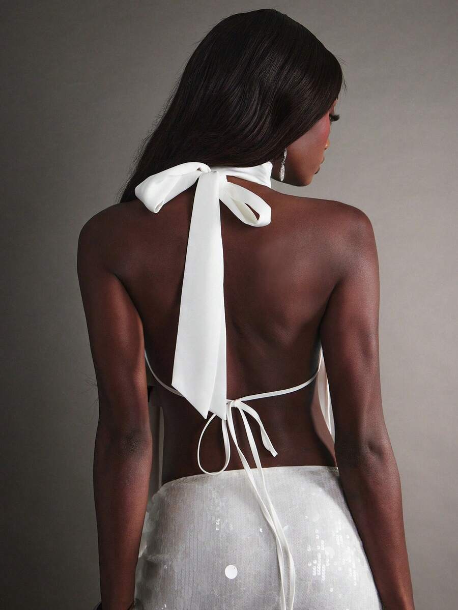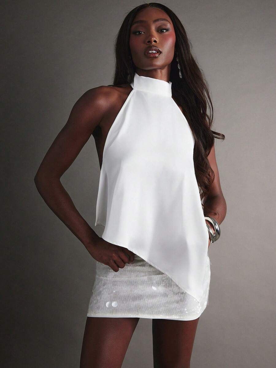 Sexy Party Night Out Asymmetrical High Mock Neck Backless Elegant Halter Top