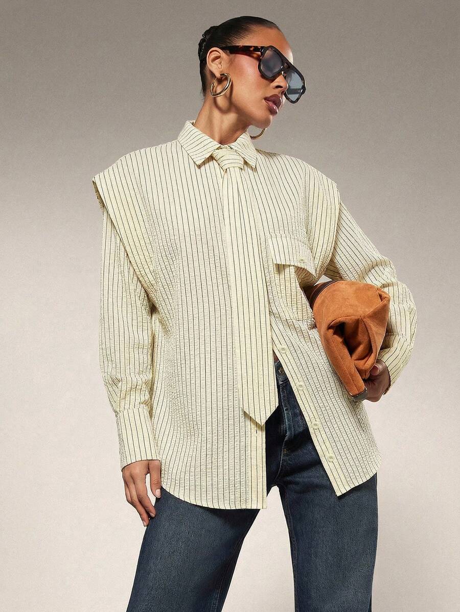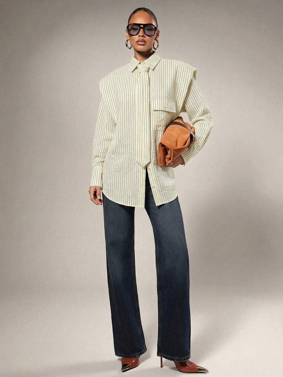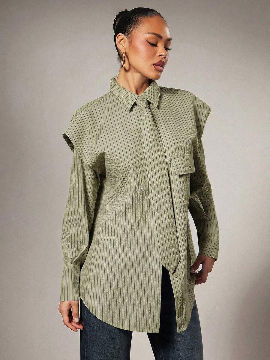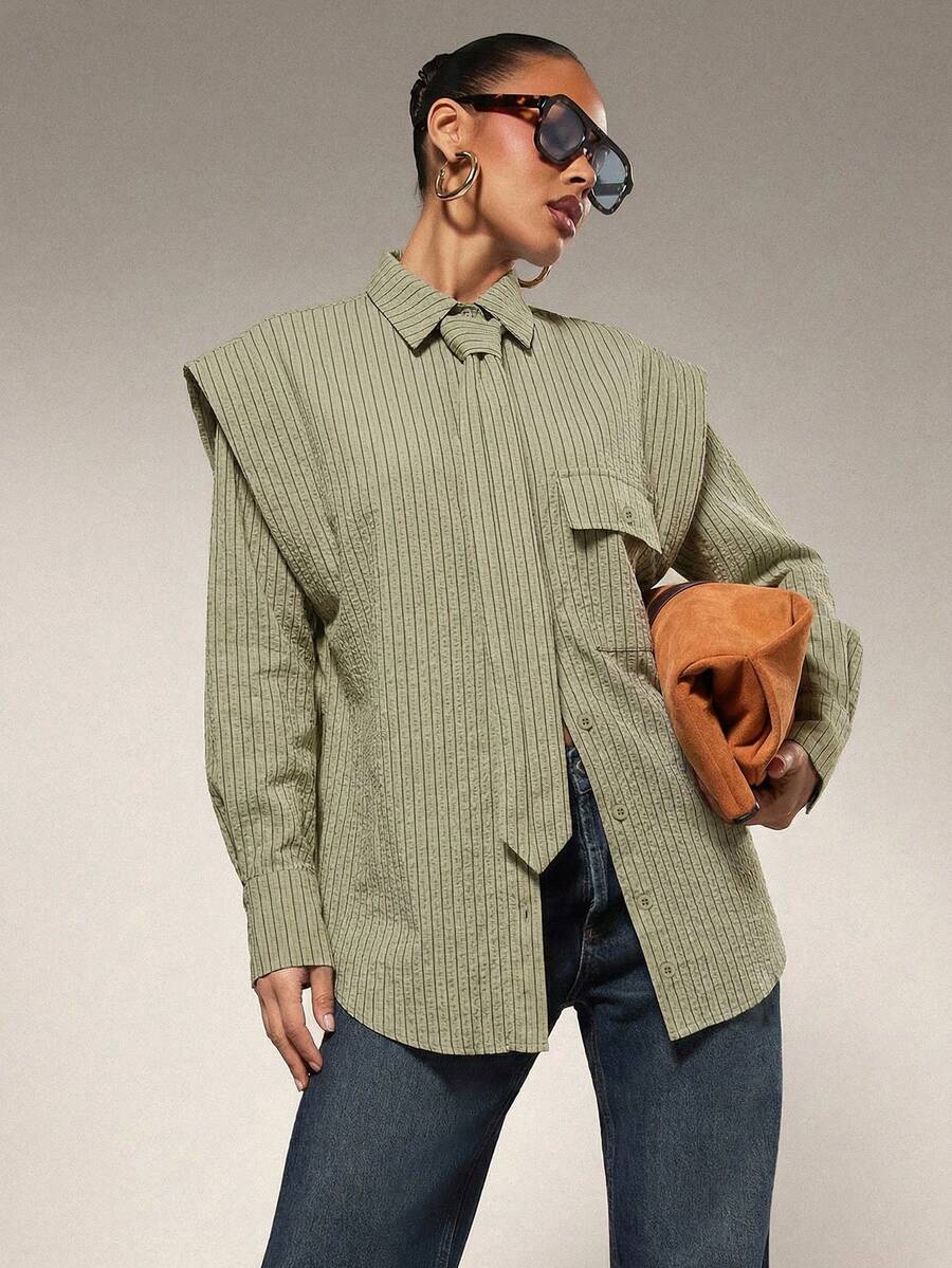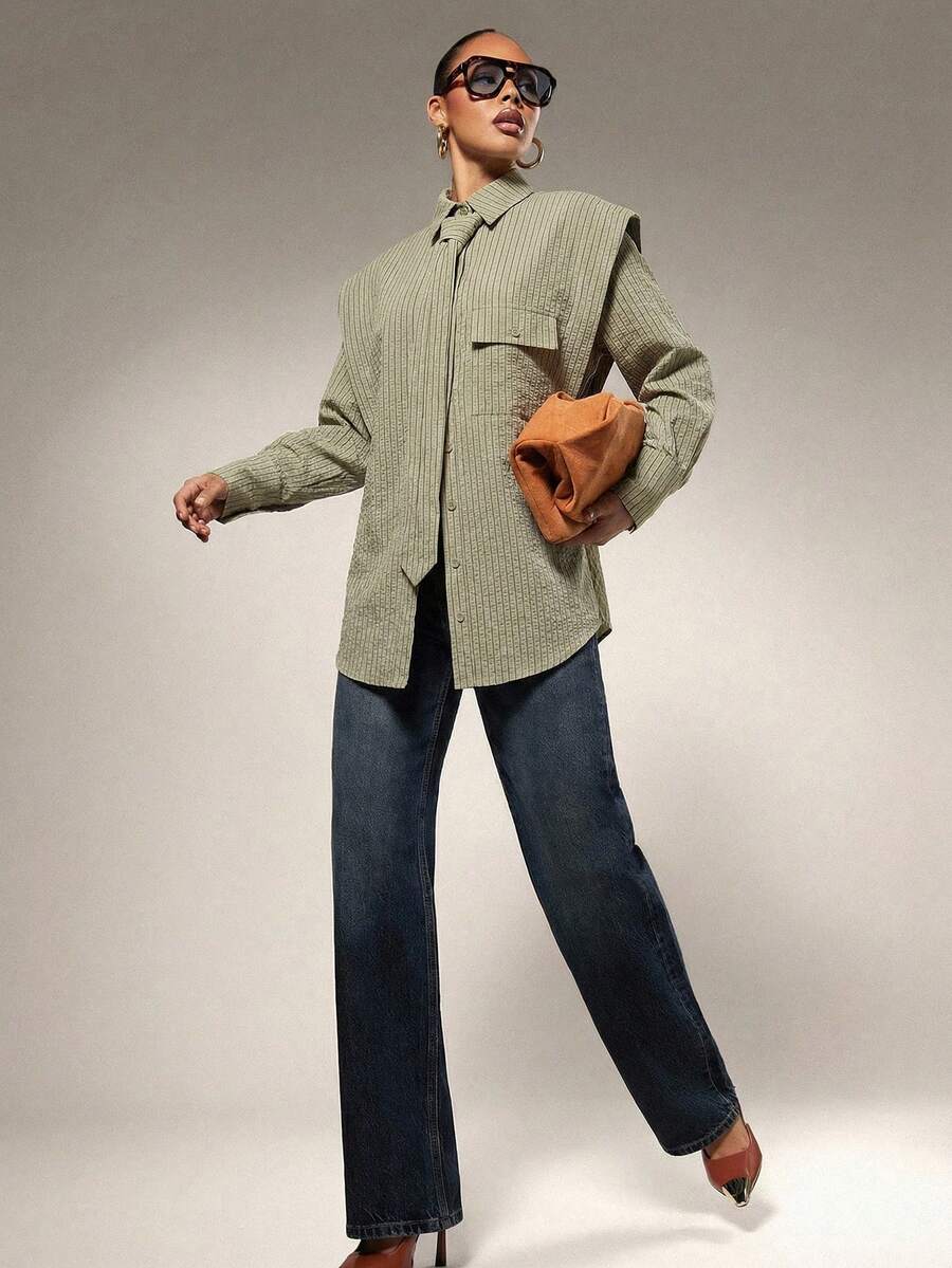 Tie Front Exaggerated Shoulder Shirt