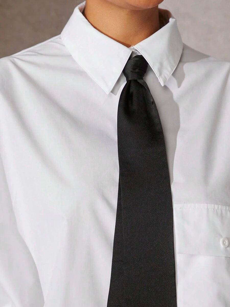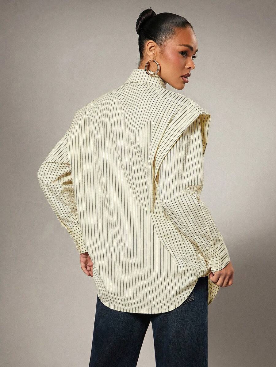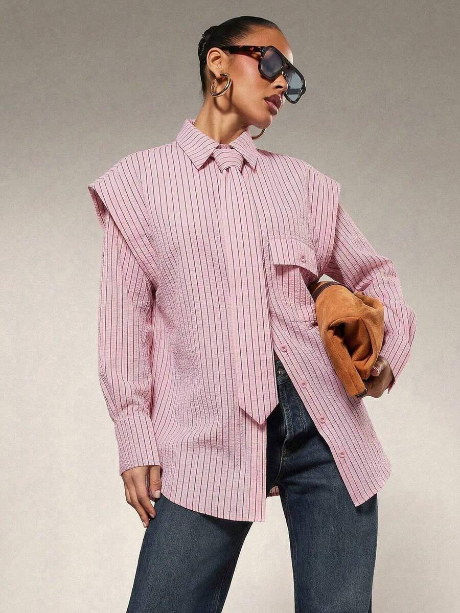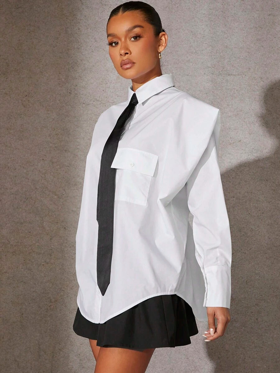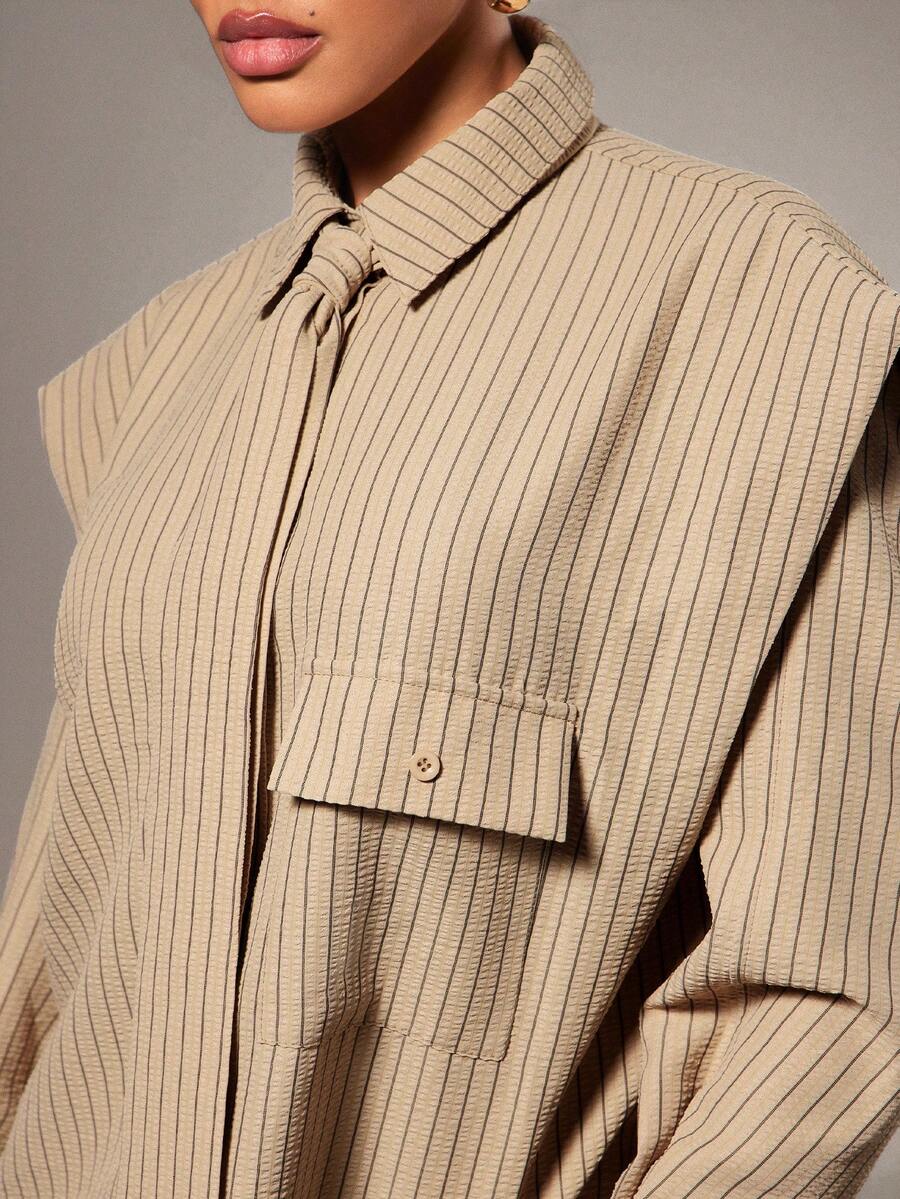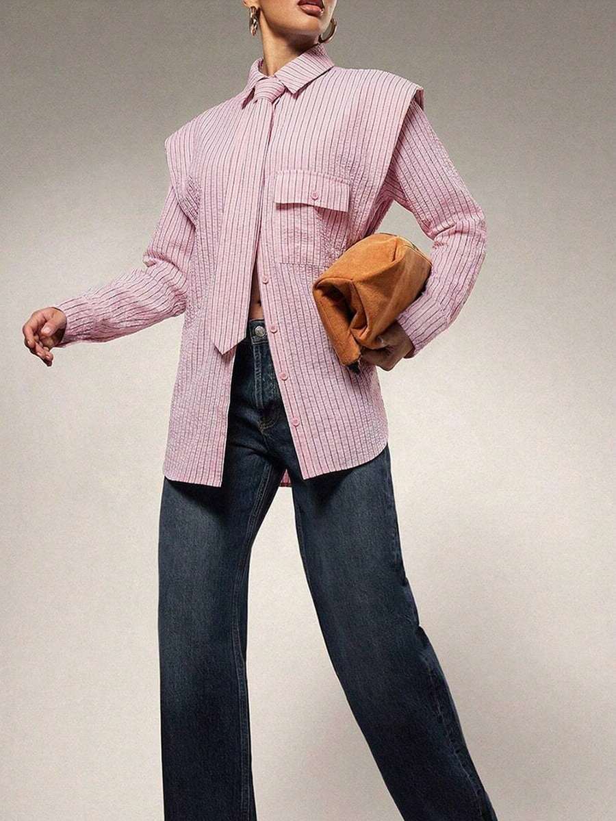 Tie Front Exaggerated Shoulder Shirt
