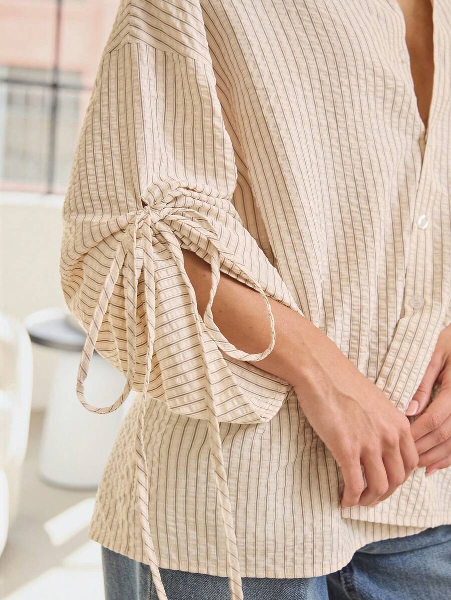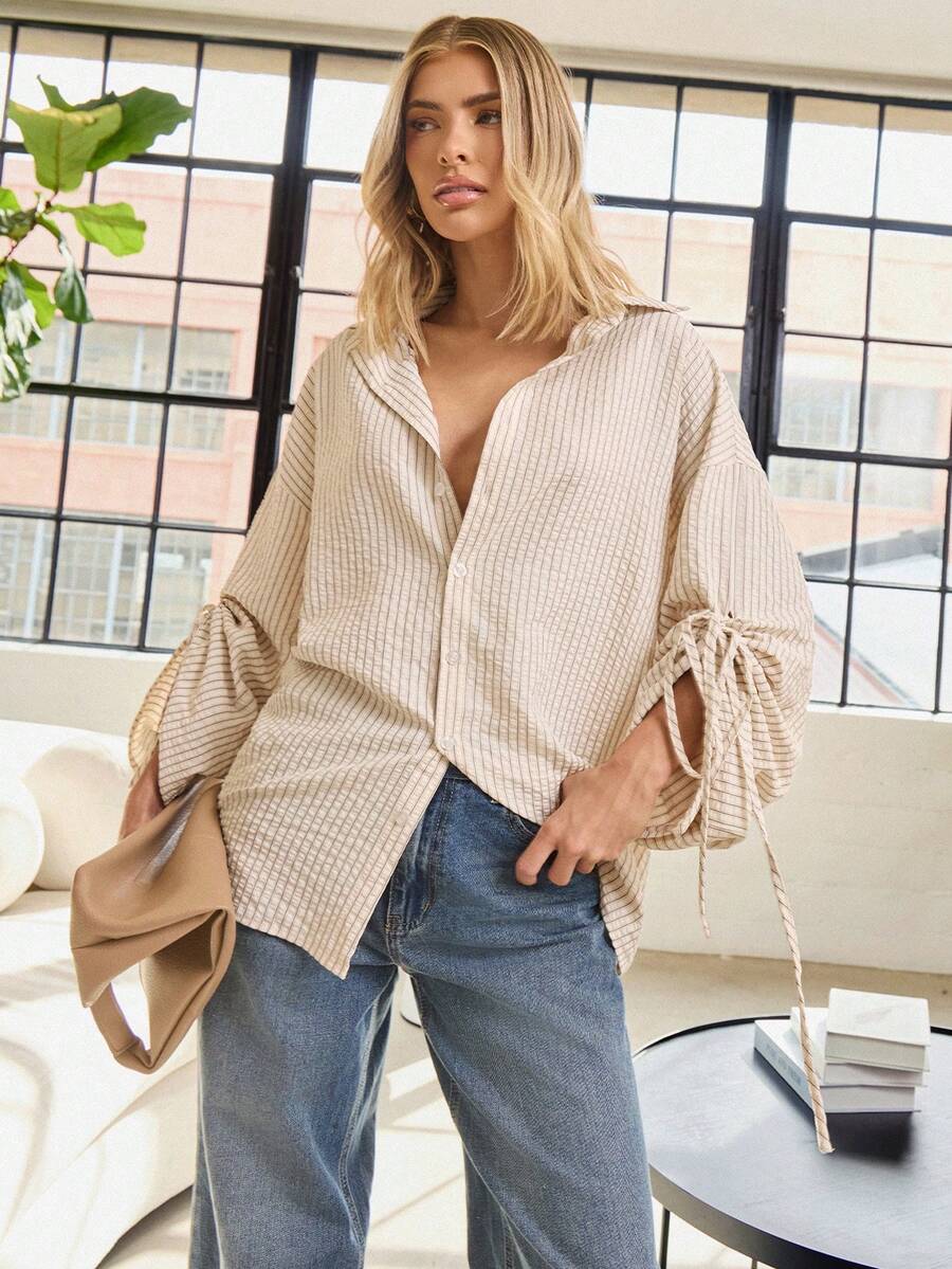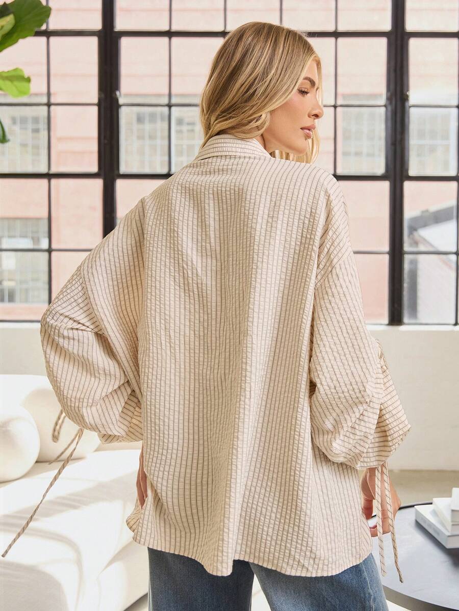 Women's Long Sleeve Shirt With Adjustable Striped Cuff Design, Suitable For All Seasons