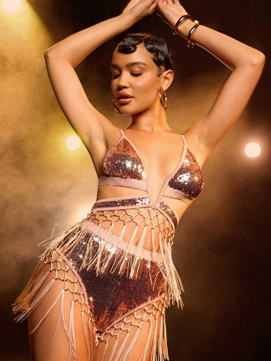 Women's Sexy Sequined Tassel Hem Backless Camisole Top For Festival