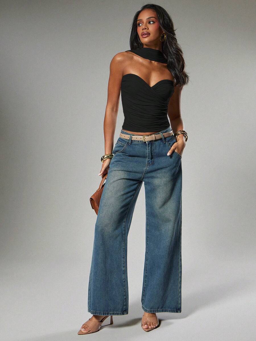 Business Office Sexy Fall Soft Brushed Sweetheart Ruched Pleated Backless Halter Top